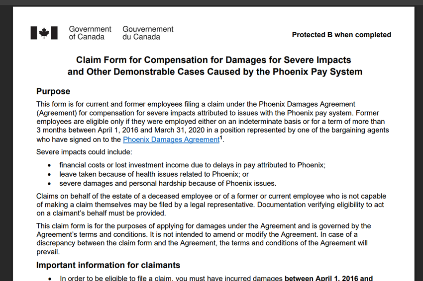 - Phoenix pay system damages agreement (2020) (applies to PSAC members)