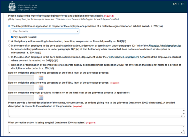 - The bargaining agent must indicate on the form that it is an overpayment recovery grievance (Pay-Recovery)