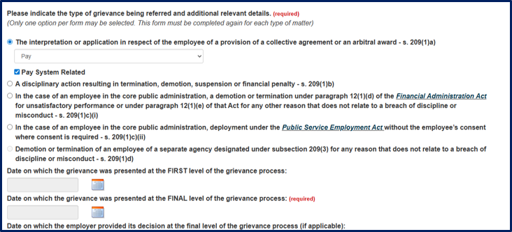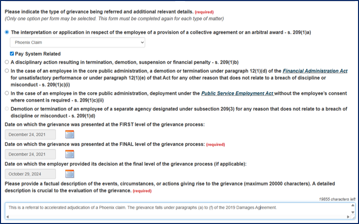 If the grievance is about a grievor’s pay or the Phoenix Pay System but is not related to any of these: